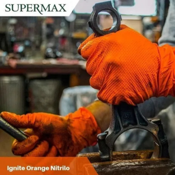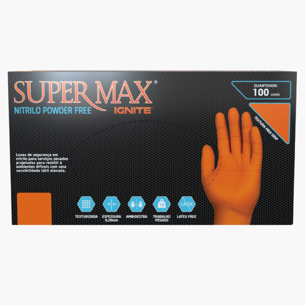 Luva Proteção Ignite Nitrílica Laranja Sem Pó Supermax é um equipamento de proteção individual não estéril para procedimentos não cirúrgicos.