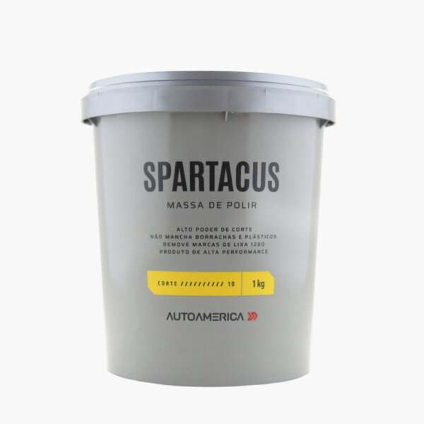 O Spartacus é um composto de polimento da Autoamerica, indicada para a etapa de corte no polimento automotivo. Possui alto poder de remoção, eliminando com facilidade marcas de lixamento em repinturas. Sua formulação de alto rendimento libera mínima quantidade de poeira, sendo adequada para todos os tipos de pintura. Além de possuir alta lubrificação, o que mantém o composto mais tempo sobre a superfície.